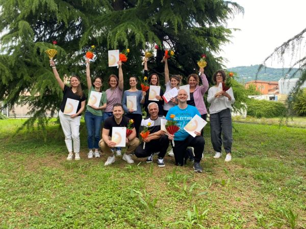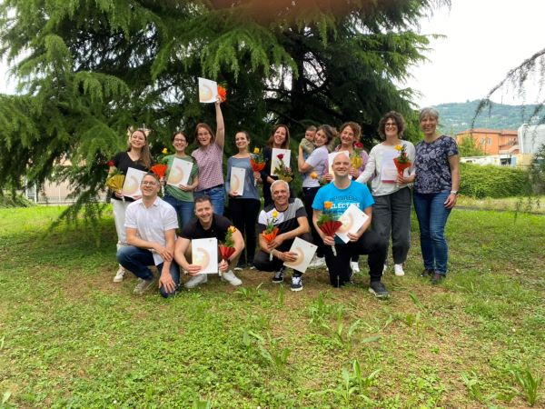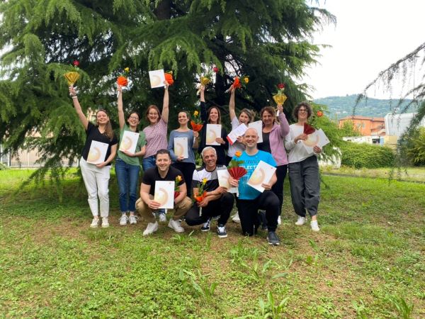 CongratulazioniLa Formazione Insegnanti Kinaesthetics Livello 1 iniziata a maggio 2024 si è conclusa a Brescia il 16 maggio 2025. Congratulazioni agli 11 partecipanti che hanno vissuto questo percorso e raggiunto questo traguardo dopo un anno intenso di lavoro insieme e di viaggi verso Brescia, dove sono confluiti per ben 5 volte e un totale di 20 giornate, dal Ticino, da Poschiavo, dall’Emilia Romagna, dalla Lombardia, dal Trentino e dall’Alto Adige.